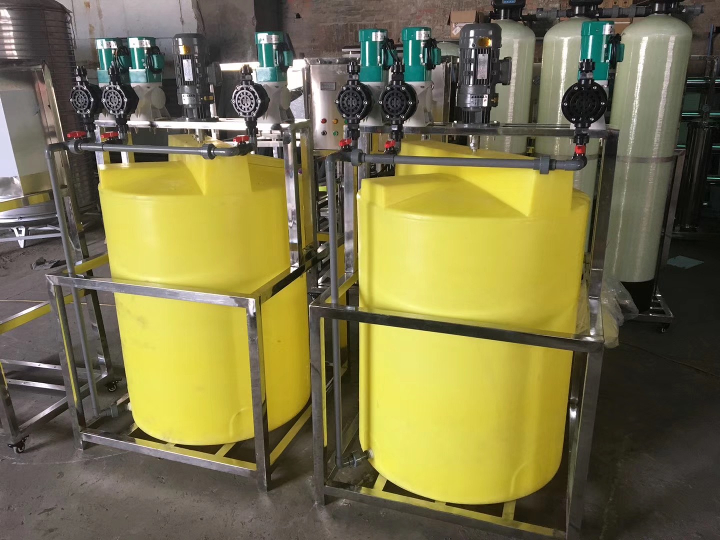 工業水處理中,需要控制液體的PH值,使其處在一定范圍內。根據需要,向液體中投加酸或堿性藥劑是最為直接、有效的方案。其中,常用的酸堿中和劑包括:硫酸、鹽酸、氨水化鈣、氫氧化鈣、碳酸鈉等等。此裝置可集成酸堿藥劑投加所需全部步驟,包含藥劑溶配、攪拌、定量投加、安全系統及控制系統等。