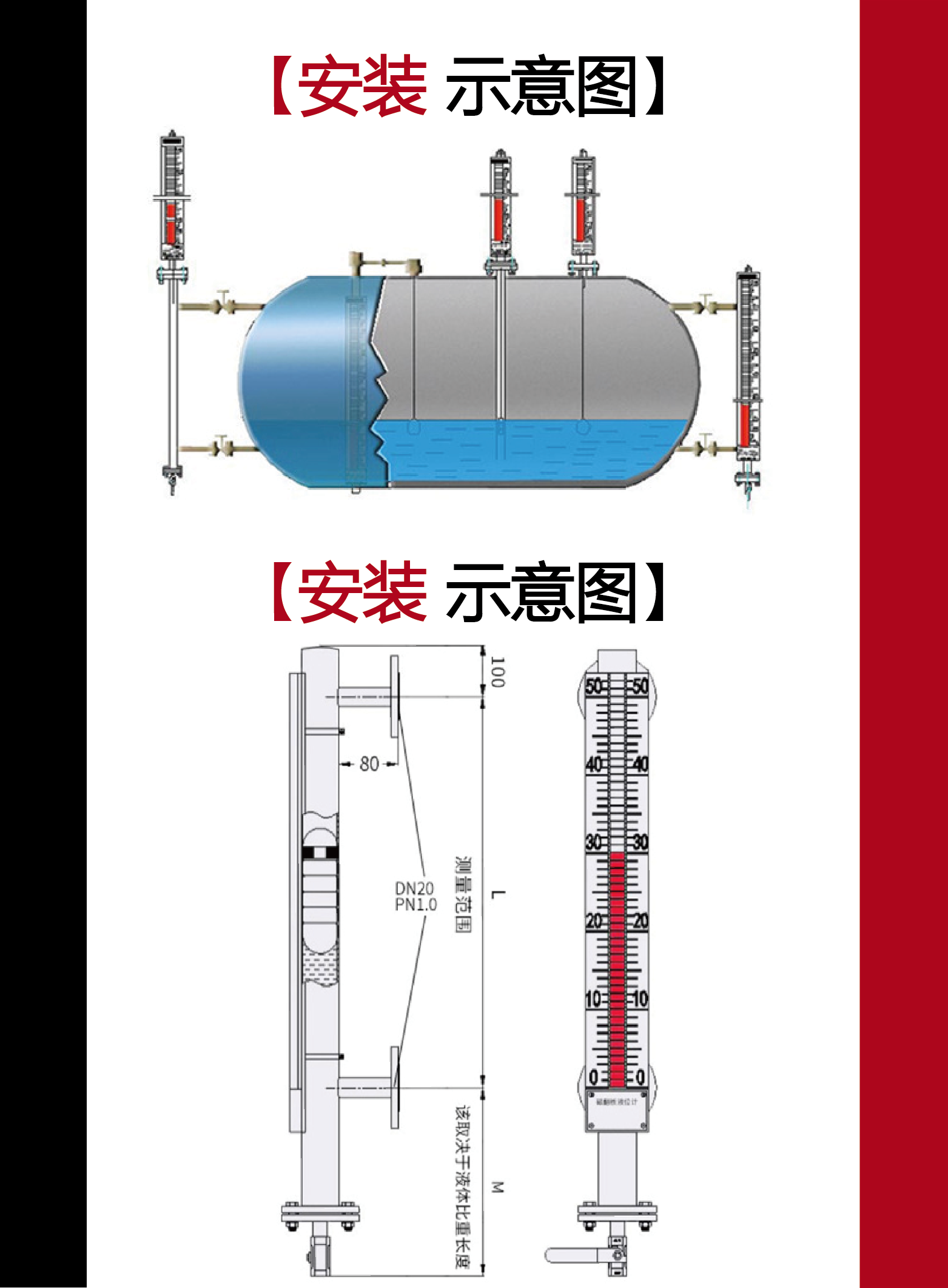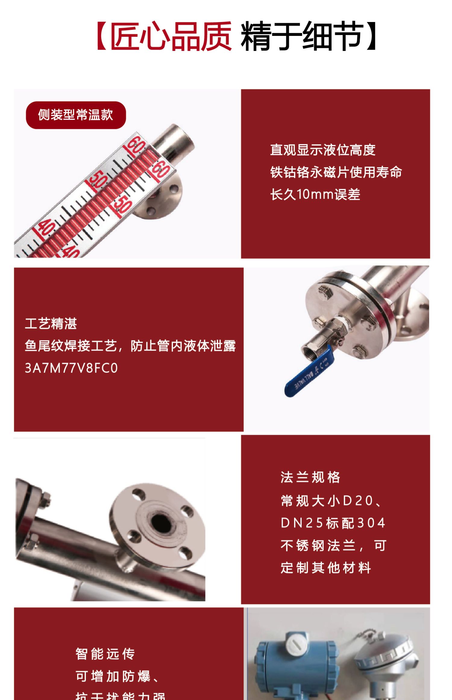 UHZ磁性翻板液位水位計儀器遠傳側裝頂裝不銹鋼內襯防腐蝕浮球