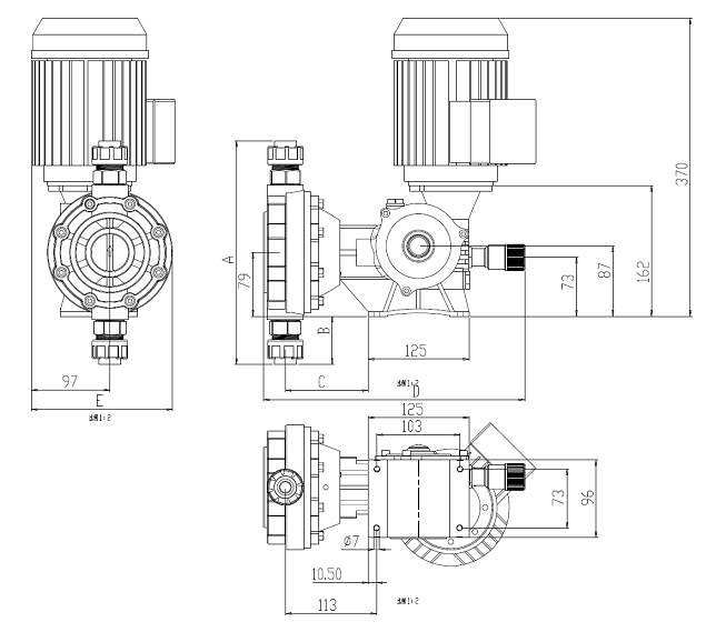 側面圖 泵頭正面圖