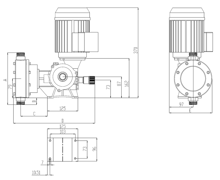 側面圖 泵頭正面圖